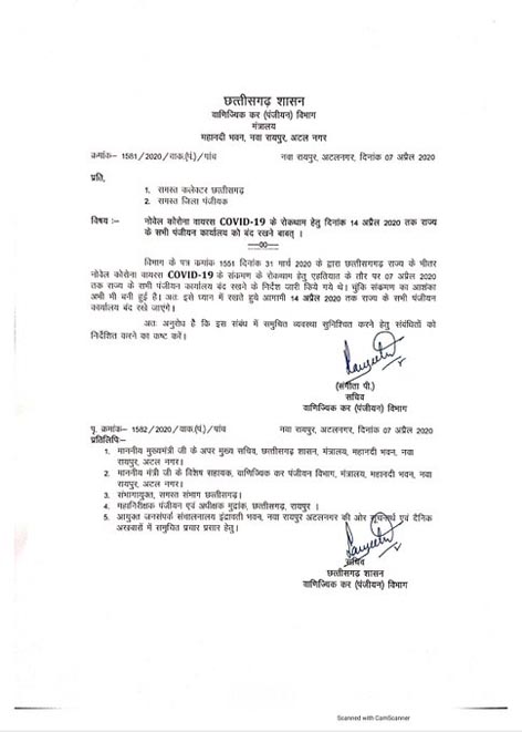 छत्तीसगढ़: कोरोना वायरस के संक्रमण की रोकथाम के लिए राज्य के पंजीयन कार्यालय अब 14 अप्रैल तक बंद रहेंगे। इसके पहले पंजीयन कार्यालय को 7 अप्रैल तक बंद रखने के आदेश वाणिज्यिक कर (पंजीयन) विभाग द्वारा जारी किए गए थे। @SakalleyTanmay @gyanendrat1 @riteshmishraht @jptripathi2007 pic.twitter.com/Tje9LfGl7y