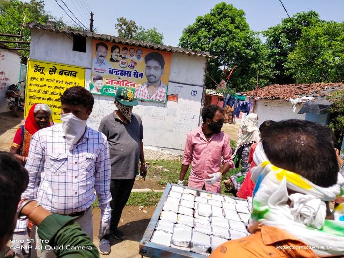 चंडीनगर, लक्ष्मीनगर मोवा, अमलीडीह, दगनिया खदान बस्ती, डब्ल्यू आर एस कॉलोनी, मठपारा, में कुल 1000 भोजन पैकेट वितरण किया गया । भोजन पैकेट वितरण अभियान को संचालित करने में ट्रेड यूनियन कार्यकर्ता धर्मराज महापात्र, प्रदीप मिश्रा, एस सी भट्टाचार्य,सुरेंद्र शर्मा एस एफ आई नेता डॉ राजेश अवस्थी, मनोज देवांगन माकपा नेता प्रदीप गभने, अजय कन्नौजे, शीतल पटेल सीटू नेता विभाष पैतुन्दी, चंदन प्रधान, वैभव शर्मा, ललित वर्मा, धनंजय झा, अर्जुनदास विद्याधर साहू रंगकर्मी शेखर नाग, रतन गोंडाने ने हिस्सा लिया।