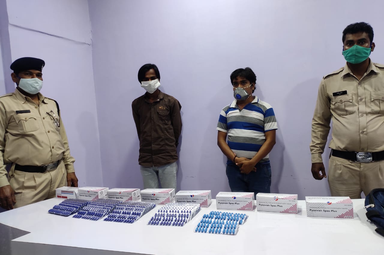 कोतवाली टीआई दुर्गेश शर्मा ने बताया कि मुखबिर से दो युवकों द्वारा बड़ी मात्रा में नशीली दवाएं रख कर बेचने के लिए ग्राहक तलाशने की सूचना मिली थी। सूचना पर पुलिस अधीक्षक अभिषेक मीणा को अवगत कराते हुए उनके मार्गदर्शन में तत्काल कार्यवाही कर पुलिस टीम ने मौके पर दबिश दी। मोटर सायकल हीरो होण्डा स्प्लेण्डर प्लस क्रमांक सीजी 12 एन 2026 के पास एक बैग रखे दो युवक मिले। युवकों ने पूछताछ में अपना नाम नरेन्द्र भारिया पिता अशोक कुमार भारिया 32 वर्ष, निवासी गोपालपुर भाठापारा दर्री व कोमल राठौर पिता सियाराम राठौर 25 वर्ष, निवासी अगार खार (लाटा) दर्री बताया।