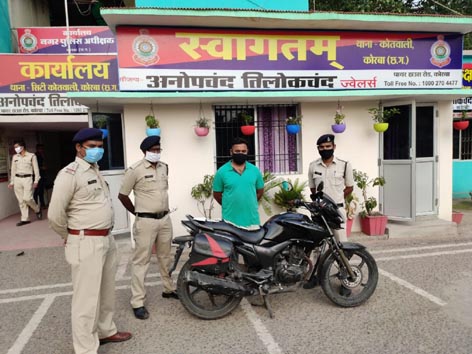 कोरबा:- पुलिस कोरोना से लोगों की सुरक्षा के लिए चौबीस घंटे अपनी सेवा दे रही है. इधर शातिर अपराधी पुलिस की आड़ में अपराध को अंजाम दे रहे हैं. ऐसा ही एक मामला सामने आया है, जिसमें बदमाश ने खुद को पुलिस कर्मी बताकर राशन लेने जा रहे युवक से तीन हजार रुपए लूट लिए. वह कुछ ही घंटे के भीतर असली पुलिस के हत्थे चढ़ गया. पुलिस ने आरोपी से लूट की रकम व बाइक जब्त कर ली है.